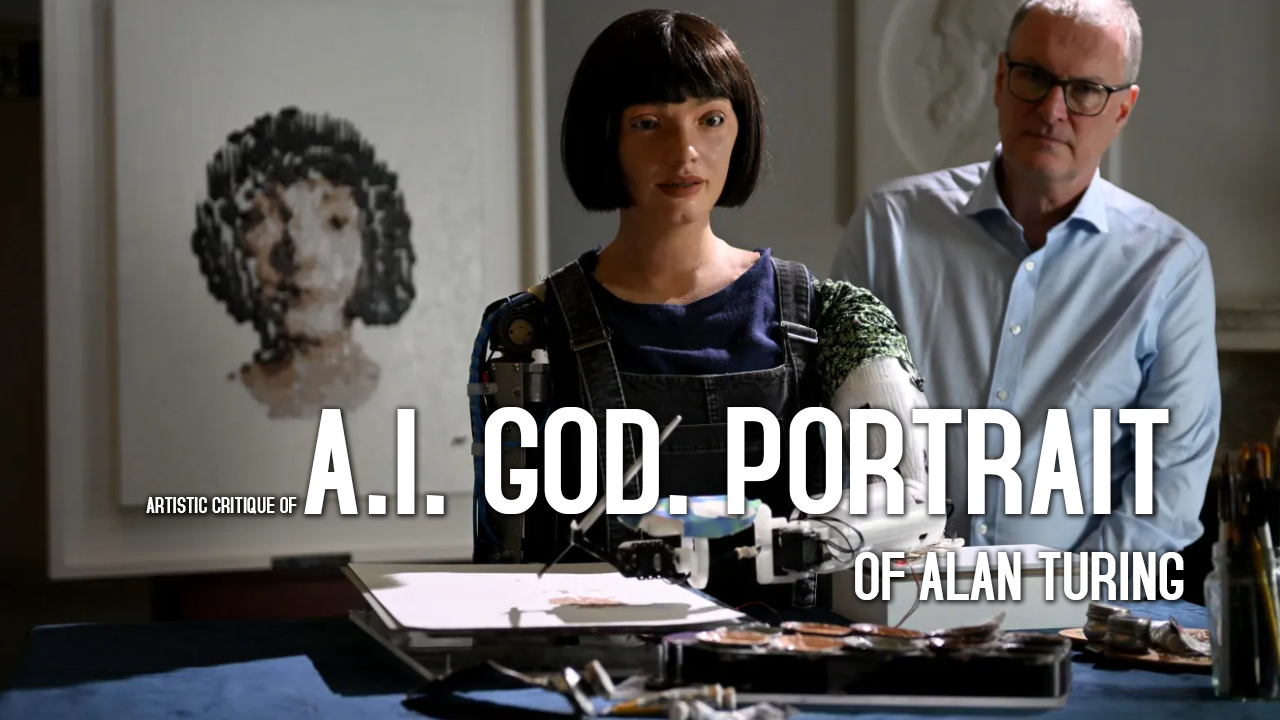 A.I. God. Portrait of Alan Turing is a masterful exploration of the human condition in an age of AI. By reimagining Turing’s life through a speculative lens, the artwork challenges viewers to confront the ethical and existential stakes of artificial consciousness. Its visual elements—luminous figures, algorithmic landscapes, and symbolic contrasts—create a powerful meditation on creativity, ethics, and the limits of human agency. While its narrative may be less conventional than some contemporaneous works, the piece’s thematic resonance and technical innovation solidify its place as a thought-provoking contribution to the evolving dialogue between art and technology.